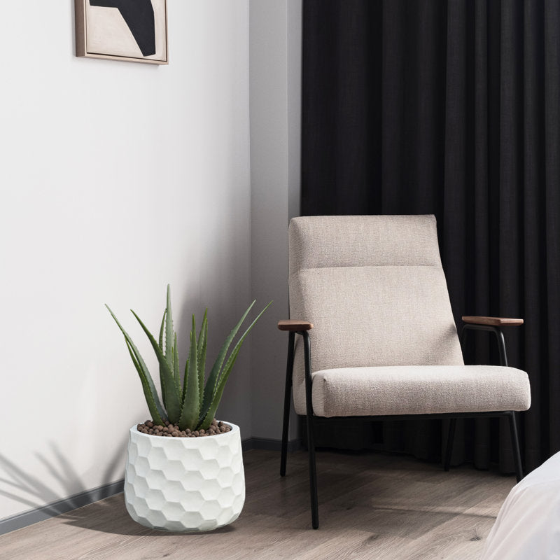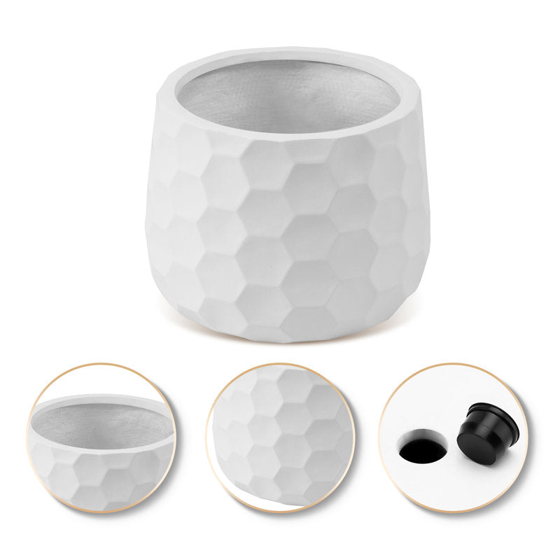 This planter pot features a durable design and a textured look, making it suitable for year-round outdoor use. It's crafted from a magnesium oxide composite, and it comes in a matte white hue for an inviting vibe. A rounded silhouette is accented with hexagons across the surface for a boldly dimensional look. This planter has a drainage hole to keep your plants or flowers healthy and hydrated. And since it's designed to resist rust and weather, you can leave it on your patio or porch without worry.